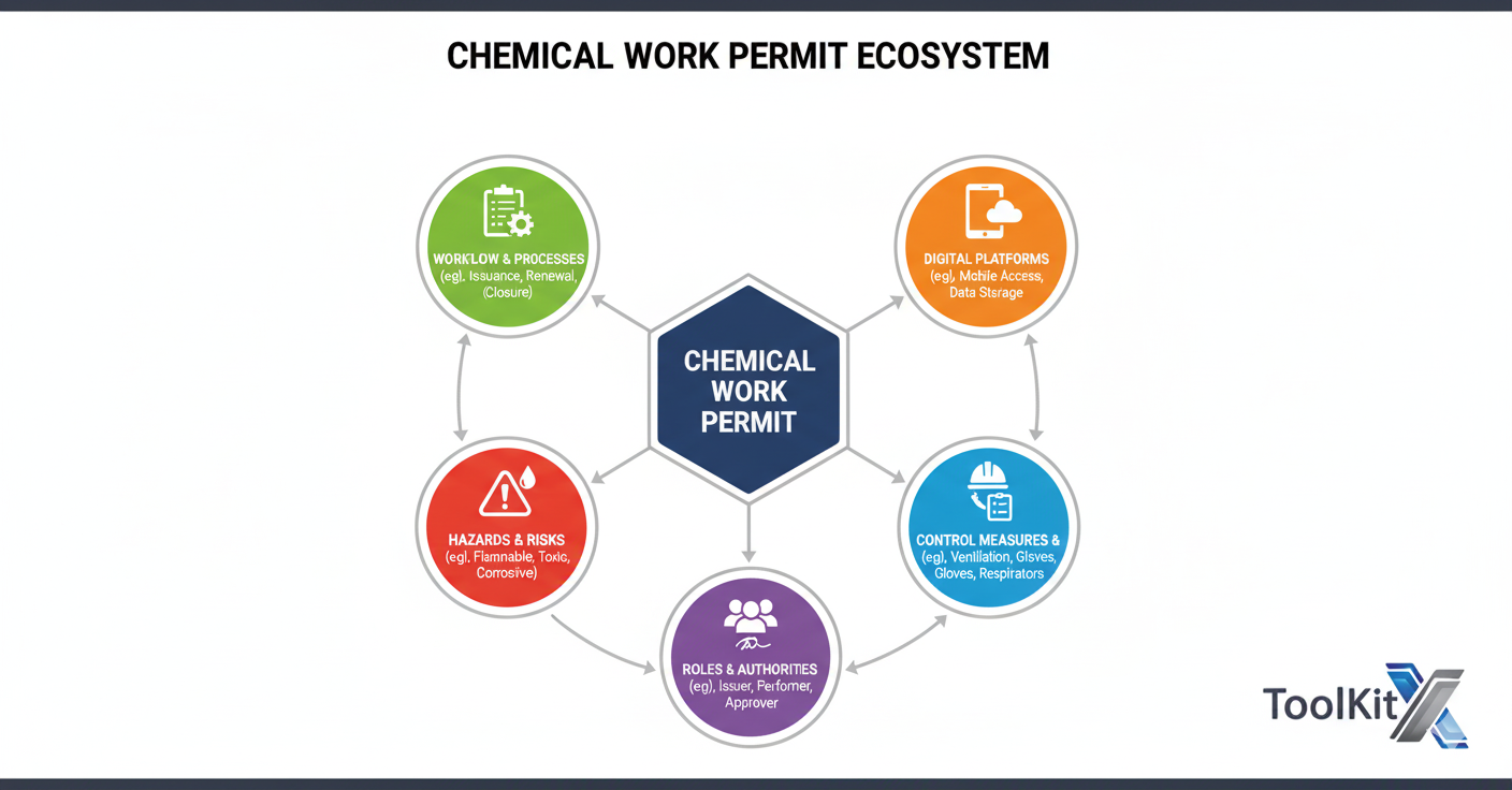A chemical work permit is a critical component of industrial safety. It ensures hazardous chemical tasks are planned, authorised, monitored and executed under controlled conditions. By having good procedures – and moving to digital PTW tools like ToolkitX – you can reduce chemical risk, improve compliance and increase operational reliability.