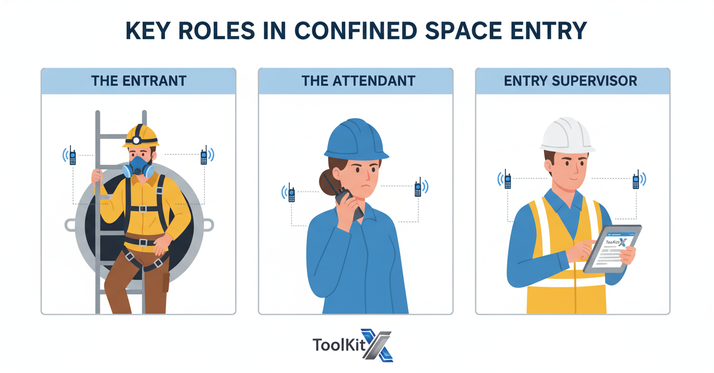 A safe entry is never a one person job. It’s a team effort with three clearly defined roles.