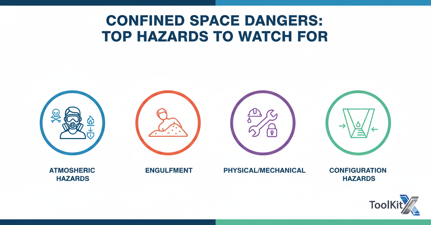 - Atmospheric Hazards: This is the #1 risk. It includes low oxygen (asphyxiation), flammable or explosive gases or toxic fumes like carbon monoxide.